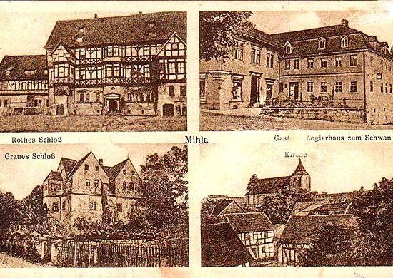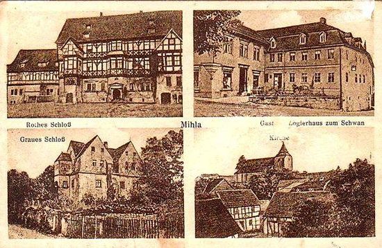 Das Rote Schloss in Mihla ist eines der am umfangreichsten erhaltenen Fachwerk-Schlossbauten der Renaissance in Westthüringen. Auf einem massiv gemauertem Erdgeschoss mit Eckquaderung stehen die beiden Fachwerketagen abgeschlossen von einem Satteldach. An der nördlichen Gebäudefront befinden sich drei turmartige Erker. Seitliche Erker auf viereckigem Grundriss reichen bis zum zweiten Obergeschoss.