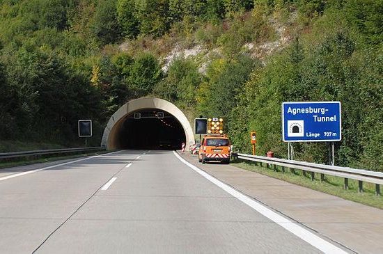 Der Agnesburgtunnel ist ein Autobahntunnel auf der Bundesautobahn 7 bei Aalen zwischen den Anschlussstellen Aalen/Westhausen und Aalen/Oberkochen. Der 707 m lange Tunnel wurde zwischen 1983 und 1986 im Auftrag der Innenministerien von Baden-Württemberg und Bayern erbaut und kostete 32,8 Mio. DM . Baubeginn mit Stollenanschlag war am 19. Dezember 1983. Aufgefahren wurden beide Tunnelröhren im bergmännischen Vortrieb nach der Neuen Österreichischen Tunnelbauweise von Norden nach Süden . Der Tunnel wurde um rund fünf Meter pro Tag vorgetrieben, der Durchbruch der ersten Tunnelröhre war am 31. Juli 1984. Der Tunnel wurde am 18. Dezember 1987 für den Verkehr freigegeben.