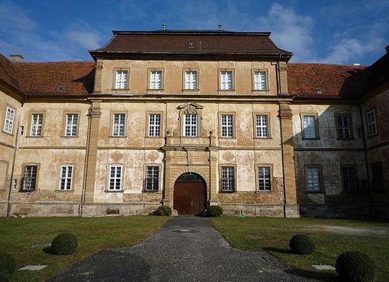 Der Ursprung von Schloss Sulzheim wurde von einem burgartigen Hof gebildet, der sich im Besitz des Würzburger Hofkapitels befand. 1134 ging der Ort Sulzheim mit anderen elf Orten als Geschenk an die neu gegründete Abtei Ebrach über.