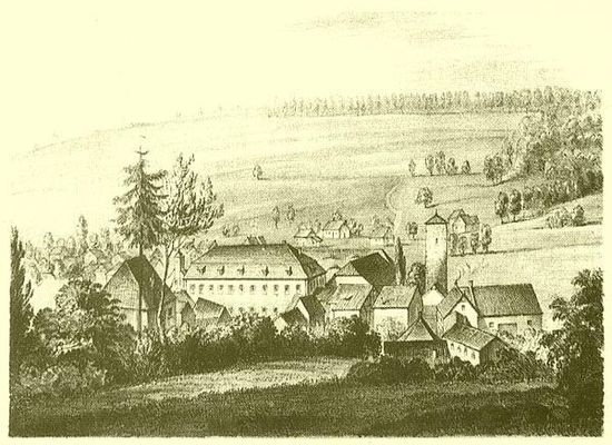 Mitte des 15. Jahrhunderts erwarben die Burggrafen von Kirchberg im Raum Farnroda durch Sigmund von Kirchberg eine neue Heimat. Ihre bisherigen Güter lagen im Saaletal bei Jena. Mit dem Kauf von Höfen in Burbach, Seebach und Farnroda sowie Wiesen und Ackerflächen bei Wutha und Eisenach gewannen die Kirchberger eine wirtschaftliche Grundlage für den Neuanfang im Eisenacher Gebiet. Um 1600 verlieren sich die Spuren der Herren von Farnroda, die als Ortsadelige Patronatsherren der Laurentiuskirche und Gerichtsherren von Farnroda waren. Die Kirchberger traten mit Zustimmung des Eisenacher Herzogs ihre Nachfolge an und übernahmen auch das bei der Wasserburg befindliche Gut. Als Zeichen des Neuanfangs wurde das alte Gutshaus abgerissen und durch ein im Renaissancestil erbautes Fachwerkhaus ersetzt. Der Gutshof bestand zu diesem Zeitpunkt aus einem Vierseithof mit Scheunen, Stallungen und einer eigenen Mühle am Erbstrom. Nördlich des Gutshofes befanden sich zu diesem Zeitpunkt noch die baufälligen Überreste der mittelalterlichen Wasserburg Farnroda und ein Teich.