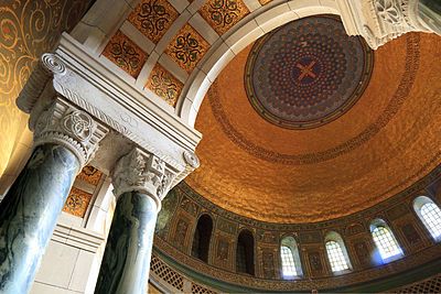 Das Mausoleum wurde in den Jahren von 1911 bis 1915 in der Regierungszeit von Fürst Adolf II. nach Plänen des Berliner Architekten Paul Baumgarten im neoromanischen Stil errichtet. Es ist mit 43 m Höhe und 27 m Breite das größte Mausoleum dieser Art in Europa. Die Baukosten betrugen über eine Million Mark.