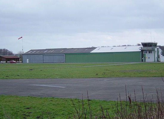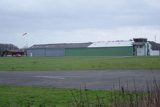 Auf dem Gelände befinden sich fünf Hallen , ein Tower und das Clubheim .