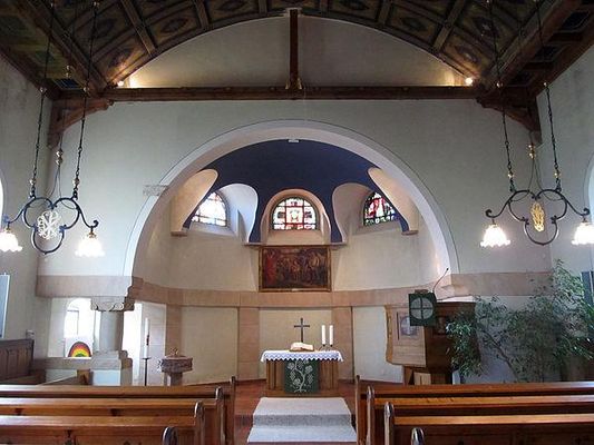Im Jahre 1902 erfolgte der Bau eines protestantischen Betsaales in Höchen nach Plänen des Architekten und Bezirksbaumeisters Johann Caspar Löhmer . In den Jahren 1909/10 wurde dem Betsaal ein Turm vorangestellt. Architekt Friedrich Larouette entwarf die Pläne für den Umbau der Kirche 1920–22, bei dem der Chorraum errichtet wurde.