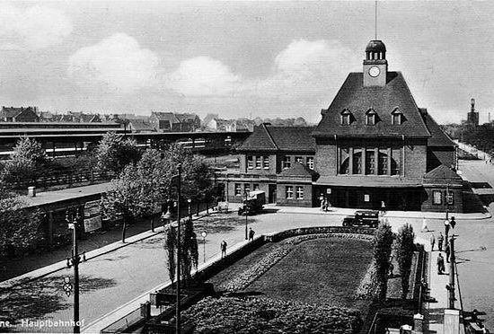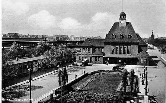 Der Bahnhof wurde 1847 zusammen mit der Köln-Mindener Eisenbahn eröffnet. Er befand sich zwischen dem damaligen Dorf Herne mit etwa 1000 Einwohnern und dem Wasserschloss Strünkede. Dieser erste Bahnhof lag südlich des heutigen an der Von-der-Heydt-Straße. Er diente auch dem Anschluss der weiter südlich gelegenen Stadt Bochum, die erst 14 Jahre später einen eigenen Bahnhof erhielt. Deshalb trug der Bahnhof bis 1860 den Namen Herne-Bochum.