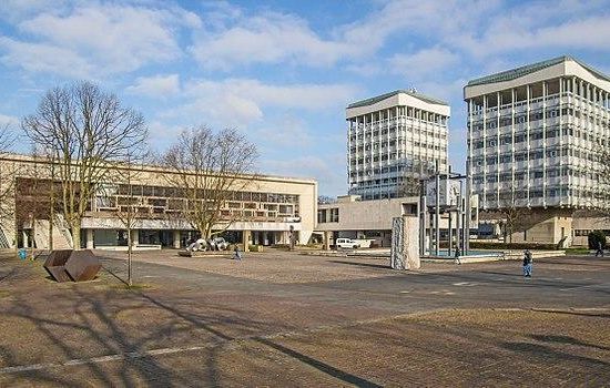 Die funktionale, vielgestaltig gegliederte Anlage besteht aus dem Ratstrakt, einem zentralen Publikumsgebäude und zwei Bürotürmen. Ein internationaler Architekturwettbewerb im Jahr 1957 war auf die Teilnahme von ausgewählten Vertretern der damaligen Moderne beschränkt. Der Gebäudekomplex wurde von 1960 bis 1967 nach Plänen von Johannes Hendrik van den Broek und Jacob Bakema errichtet.