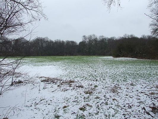 Nur 100 Meter weiter zweigt der Lehmbacher Weg ab. Einer der zahlreichen Wasserläufe, die aus dem Königsforst kommend durch die Felder zogen, speiste aus Richtung der Erker-Mühle die früheren Gräben der Anlage. Das in der Örtlichkeit noch nachvollziehbare Areal umfasst etwa drei Hektar.