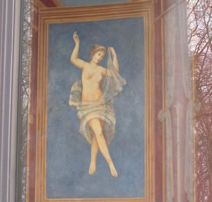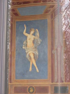 Die kleine Loggia im Stil der florentinischen Frührenaissance ist halbkreisförmig Richtung Potsdam geöffnet mit Sichtachsen zum Schloss Babelsberg und zum Potsdamer Zentrum. Die offene Bogenwand enthält Wandgemälde nach Art pompejanischer Fresken sowie zierende Holzvertäfelungen und ist heute unzugänglich, aber einsehbar durch eine Glaswand geschützt. Der Boden der Säulenhalle ist mit einem Marmorfußboden ausgestattet, in der Mitte der Bogenwand befindet sich eine Tür mit der Überschrift „Alexandra“.