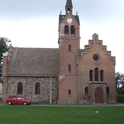 Im Jahr 1242 wurde das um 1230 entstandene Angerdorf erstmals urkundlich erwähnt. Das sorgfältige Feldsteinquadermauerwerk und die Reste von Rundbögen weisen die Kirche als spätromanischen Bau aus, worauf auch die ursprünglich vorhanden gewesene Apsis hindeutet. Es ist also eine Bauzeit zwischen 1250 und 1260 anzunehmen. Das Dorf hatte vier Pfarrhufen und eine Kirchhufe.