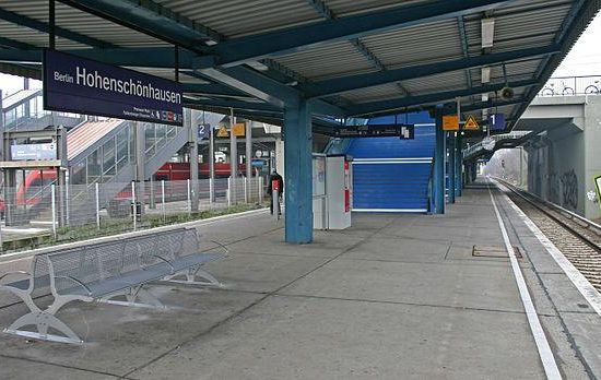 Der Bahnhof liegt im Zentrum des Ortsteils Neu-Hohenschönhausen am Kreuzungspunkt des Berliner Außenrings mit der Falkenberger Chaussee. Die Straße überquert die Strecke mit drei Überführungen, von denen die nördliche und südliche dem Individualverkehr dient. Die mittlere Überführung befahren Omnibusse und Straßenbahnen.