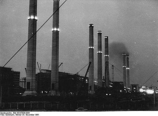 Die Grundsteinlegung für ein Mühlenfundament im Werk I war am 23. Oktober 1957. Der erste von sieben Schornsteinen mit einer Höhe von 140 m wurde 1958 fertiggestellt. Ein Jahr später war das Kraftwerk betriebsbereit und wurde ans Stromnetz angeschlossen. Der Bau aller sieben Schornsteine war 1960 abgeschlossen. Insgesamt wurden drei Kraftwerksblöcke gebaut: Werk I , Werk II und Werk III . Der Kraftwerksbau, dessen Projektierung und Ausführung seit 1959 dem VEB BMK Kohle und Energie oblagen, war 1964 abgeschlossen. Die Gesamtleistung betrug 1,3 GW und das Kraftwerk Lübbenau war somit zu der Zeit das größte Dampfkraftwerk Europas.