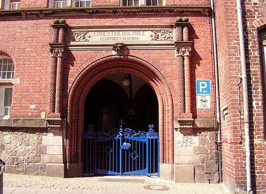 Die Schule wurde am 20. März 1804 als Lehranstalt für Töchter der „mittleren Bürgerklasse“ durch den Prediger Hermann Friedrich Behn, den Hauptpastor an St. Marien Bernhard Heinrich von der Hude und drei weitere „angesehene Bürger“, darunter der namensgebende Stifter Ernst Hermann Kurtzhals, gegründet. Am 3. Juli begann sie mit dem Unterricht, der im ehemaligen, seit Johann Adolph Schinmeiers Tod leerstehenden Amtssitz der Superintendenten im Innenhof der Wehde in der Mengstraße stattfand. Von 1804 bis 1900 war die Schule eine privat betriebene Einrichtung, die seit 1830 den Namen „Ernestinenschule“ trägt. Im April 1900 ging die zehnklassige Höhere Mädchenschule an den Staat Freie und Hansestadt Lübeck über und erhielt vier Jahre später durch den Baudirektor Johannes Baltzer das repräsentative Gebäude in der Kleinen Burgstraße 24–26, das die Stadt Lübeck noch heute besitzt und betreibt. 1902 wurde der Schule ein staatliches Seminar für Lehrerinnen an mittleren und höheren Mädchenschulen angegliedert und von dem Oberlehrer Albin Möbusz unter dem Direktor Paul Hoffmann geleitet. Bis dahin hatten Lübecker Lehrerinnen ihre Ausbildung am Roquetteschen privaten Lehrerinnenseminar erhalten. 1919 wurde das Seminar an der Ernestinenschule aufgelöst und eine realgymnasiale Studienanstalt eingerichtet. Seit 1981/1982 die Koedukation eingeführt wurde, trägt sie die Bezeichnung Gymnasium für Mädchen und Jungen der Hansestadt Lübeck. Hinter Treppengiebeln der Renaissance von Brauhäusern aus dem 16. Jahrhundert entstand 1981 im Rahmen der Altstadtsanierung mit Städtebauförderungsmitteln der Turnhallenneubau der Ernestinenschule auf den Grundstücken Engelswisch 15–21 als Voraussetzung der Koedukation.