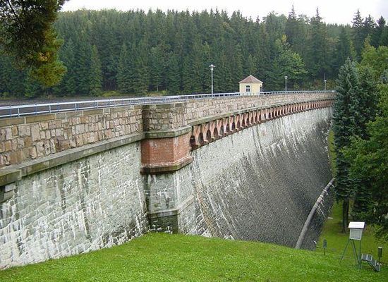 Zwischen dem 7. November 1890 und dem 14. Juni 1894 entstand die älteste Trinkwasser-Staumauer Sachsens, die zugleich nach der Eschbachtalsperre und der Panzertalsperre die drittälteste in Deutschland ist. Die Baukosten beliefen sich auf 1,3 Mio. Mark, im Schnitt waren 142 Arbeiter bei der Errichtung beschäftigt. Zur Wasseraufbereitung entstand unterhalb der Staumauer ein Wasserwerk, welches das aufbereitete Wasser über einen 3,3 km langen Stollen in das Chemnitzer Wasserleitungsnetz leitete.