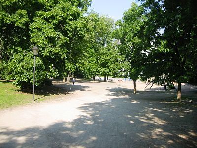 Die unscharfe Begrenzung des Parks wird durch die Belziger Straße im Norden, Rückseite der Bebauung der Eisenacher Straße im Osten, die Gebäuderückseiten der Hauptstraße im Süden und die Mauer des Friedhofs an der Dominicusstraße gebildet. Die Fläche kann grob mit 160 m × 200 m angegeben werden.