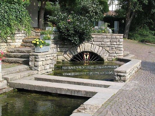 Der Kämpfelbach entspringt einer gefassten Karstquelle in Ispringen , das am Rand des Karstgebiets der Bauschlotter Platte liegt. Ein 1977 durchgeführter Färbeversuch ergab, dass über die Quelle das 1,75 Kilometer südlich der Kämpfelbachquelle gelegene Enzenloch entwässert, die Schwinde einer 3,1 Quadratkilometer großen Karstwanne ohne oberirdischen Abfluss im Bereich der Anschlussstelle Pforzheim-West der Bundesautobahn 8 und des Pforzheimer Gewerbegebiets Wilferdinger Höhe. Die bei dem Färbeversuch ermittelte Abstandsgeschwindigkeit lag bei 77 Meter pro Stunde. Heute wird die Umgebung des Enzenlochs, soweit versiegelt, über einen Stollen der Pforzheimer Kanalisation und die Pforzheimer Kläranlage letztlich zur Enz entwässert; nur bei starken Niederschlägen versickert noch Wasser in der Schwinde.