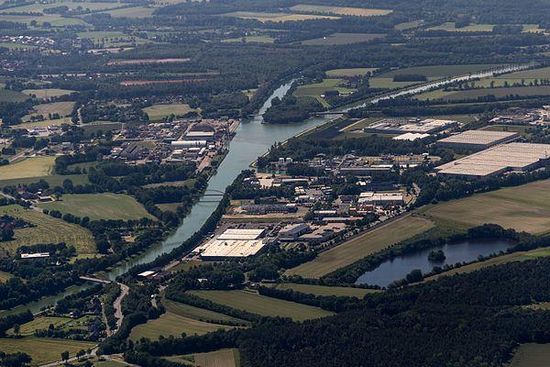 Die Häfen Ibbenbürens liegen an räumlich getrennten Standorten südlich und nordwestlich des Ortskernes auf einer Höhe von 49,6 bis 50,6 m ü. NN an den Bundeswasserstraßen Mittellandkanal und am Dortmund-Ems-Kanal .