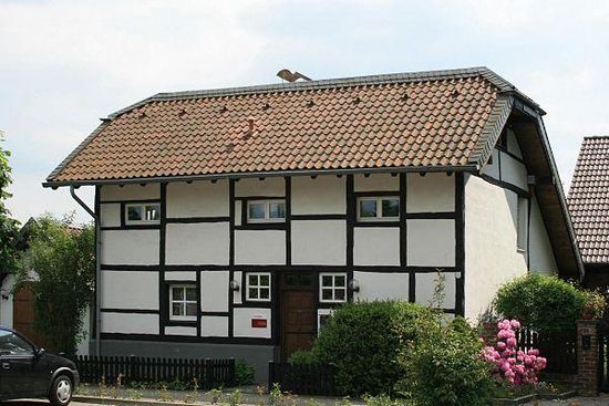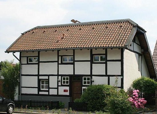 Es handelt sich um ein zur Platzseite zweigeschossiges Fachwerkständerhaus mit Krüppelwalmdach, sowie einer versetzt angebauten massiven Erweiterung mit Satteldach und eingeschossigem Schuppenanbau. Zur Gartenseite eine niedrige Traufenführung, so dass dort eine Eingeschossigkeit gegeben ist. Die Fenstergliederung ist überwiegend kleinteilig original, teilweise aber auch verändert und mit vergrößerten Öffnungen.