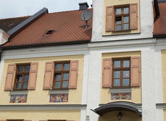 Das zweigeschossige Gebäude mit Satteldach ist das Stammhaus der Malerfamilie Scherer. An der Südseite befindet sich ein getreppter Zwerchgiebel. Der Straßengiebel ist besonders dekorativ gestaltet. An der gesamten Fassade sind Malereien mit biblischen Szenen zu sehen, die wohl von Joseph Scherer stammen.
