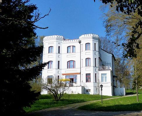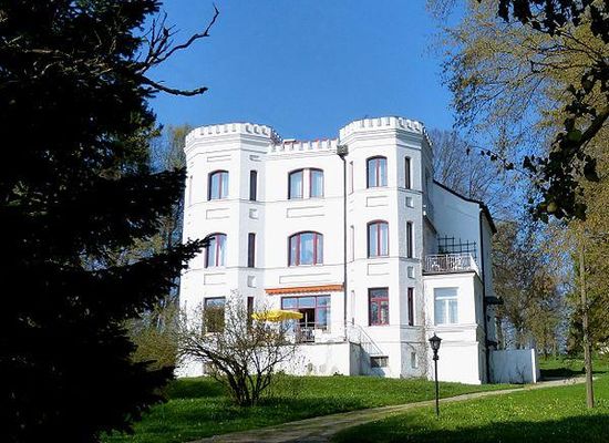 Der dreigeschossige Bau mit zwei zinnenbekrönten Eckerkertürmen und Segmentbogenfenstern wurde nach Plänen des Münchener Architekten Franz Schneider errichtet. Franz Schneider geriet mit dem Bau in finanzielle Schwierigkeiten und musste die Villa verkaufen, die er nie bewohnte. Er wanderte nach Amerika aus, wo er verstarb.