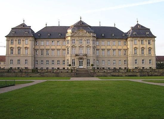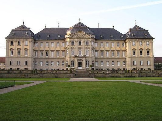 An der Stelle des heutigen Schlosses befand sich ursprünglich eine Burganlage, die erstmals 1202 urkundlich erwähnt wurde und damals im Besitz des Adelsgeschlechtes von Ravensburg war. Die Burganlage wurde im Deutschen Bauernkrieg 1525 verwüstet und von Markgraf Albrecht Alkibiades im Jahr 1553 eingenommen und niedergebrannt. 1601 wurde sie vom Würzburger Fürstbischof Julius Echter von Mespelbrunn wieder aufgebaut. 1723 brannte die Anlage erneut ab und wurde 1724 notdürftig wieder instand gesetzt. Im Auftrag von Fürstbischof Friedrich Karl von Schönborn wurde die heutige Schlossanlage in den Jahren 1733 bis 1745 durch Balthasar Neumann als Sommerresidenz erbaut. Sie gilt als sein reifstes Profanwerk.