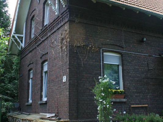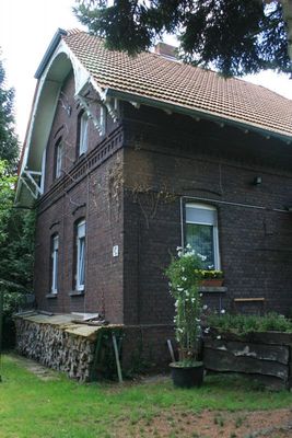 Das Wohnhaus aus dem Jahre 1908 ist ein zweigeschossiger Backsteinbau von zwei Achsen mit einem in Holzkonstruktion ausgebildeten Schwebegiebel und einem tief herabgezogenen Satteldach mit Fußwalm.