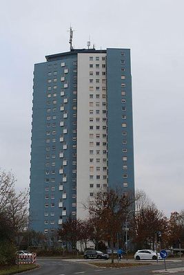 Die Schwedischen Kugellagerfabriken haben ihren deutschen Hauptsitz in Schweinfurt. Unter der Ägide des Generaldirektors der Deutschen SKF, des Schweden Gunnar Wester, erlebte die SKF in Schweinfurt ihre größte Boomphase, mit in den 1960er Jahren bis zu 12.000 Beschäftigten – weit mehr als im Stammwerk in Göteborg. Wester demonstrierte diese Stärke der Schweinfurter SKF auch durch Bauwerke . So ließ er das Blaue Hochhaus in der Farbe des SKF-Logos mit Werkswohnungen bauen. Der erste Spatenstich erfolgte am 20. Juli 1962 und im September 1964 zogen die ersten Mieter ein. Bei seiner Fertigstellung 1964 war das 73 m hohe Blaue Hochhaus 5 m höher als das höchste bis dahin fertiggestellte Hochhaus in Frankfurt am Main, das Zürich-Haus. Das Blaue Hochhaus war 1964 auch das höchste Wohnhaus Deutschlands, bis es einige Jahre später vom Langen Johann in Erlangen um zwei Geschosse übertroffen wurde.