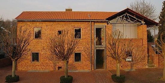 Nahe zwei weiteren Bienefeld-Häusern, Haus Pahde und Haus Stupp , grenzt das Haus auf der Gartenseite an die Aue des Weißer Rheinbogens. Am seitlich gelegenen Haupteingang zum Haus lässt sich das Gefälle ablesen. Rund 1000 m² Grundstücksfläche verteilen sich auf die Häuser des Ehepaars Heinze und Michael Manke . Struktur und Materialien des Gebäudes zitieren den römischen Ursprung Kölns.