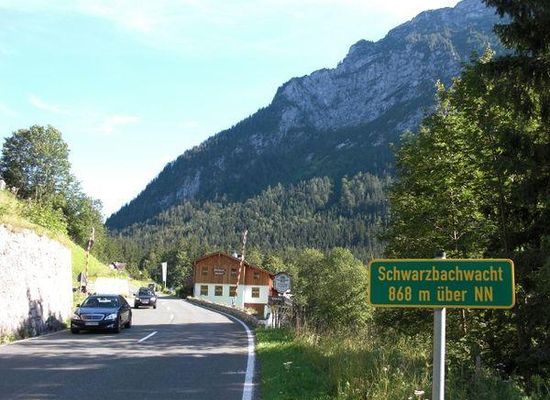 Der Pass liegt südlich des Lattengebirges und östlich der Reiter Alpe und verbindet das Tal der Saalach bei Schneizlreuth im Nordwesten mit dem Tal der Ramsauer Ache bei Ramsau bei Berchtesgaden im Südosten. Nordöstlich des Schwarzbachwachtsattels befindet sich der Karspitz , südwestlich der Edelweißlahnerkopf . Über den Sattel, der im Biosphärenreservat Berchtesgaden liegt, bildet die B 305 ein Teilstück der Deutschen Alpenstraße und der Deutschen Ferienroute Alpen-Ostsee. An der Nordwestflanke des Passes entspringt der Schwarzbach, der in Richtung Nordwesten fließt und im Ortsteil Unterjettenberg der Gemeinde Schneizlreuth in die Saalach mündet.