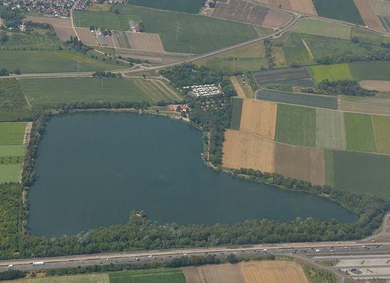 Das Gewässer erstreckt sich auf 93 m ü. NHN in der Lambsheimer Gemarkung Auf dem Hirschen in der Vorderpfalz nordöstlich von Lambsheim, südwestlich der Kernstadt von Frankenthal und westlich von dessen Stadtteil Flomersheim. Das Gelände grenzt im Süden an die Kreisstraße 4 bzw. 6, die Lambsheim mit Frankenthal verbindet. Direkt östlich läuft die Autobahn 61 vorbei, deren Rastplatz Auf dem Hirschen liegt auf Höhe der Nordostspitze des Gewässers.