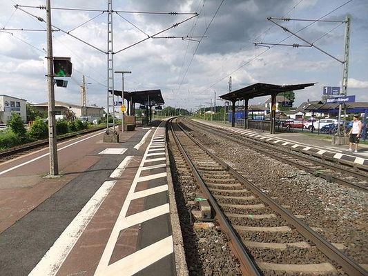 1846 wurde die Main-Neckar-Eisenbahn, die den Frankfurter und den Heidelberger Hauptbahnhof verbindet, eröffnet. Obwohl anfangs nur wenige Halte geplant waren, wurde bereits im Jahr 1848 ein Bahnhof für den damals nur etwa 950 Einwohner zählenden Ort errichtet. Der Entwurf des Bahnhofs soll vom Darmstädter Stadtbaumeister Georg Moller stammen.