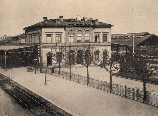 Der erste Höchster Bahnhof entstand mit dem Bau einer der ersten Eisenbahnen in Deutschland. Am 26. September 1839, nur vier Jahre nach der Eröffnung der Strecke von Nürnberg nach Fürth, eröffnete der erste Abschnitt der Taunus-Eisenbahn, der vom Taunusbahnhof in Frankfurt knapp neun Kilometer bis nach Höchst führte. Der erste Höchster Bahnhof lag 400 Meter östlich des heutigen Bahnhofs, an der Königsteiner Straße.