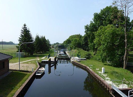 Die Schleuse wurde 1840 nach dem Finowmaß erbaut und 1960 durch einen Neubau ersetzt. Sie gleicht den Wasserstand zwischen dem Woblitzsee und dem Zierker See aus und muss auf der Bundeswasserstraße nach Neustrelitz passiert werden. Die Schleusenkammer ist 43,15 m lang, 5,34 m breit und wird mit Stemmtoren geschlossen. Das Schleusenwärterhaus gehört zu den denkmalgeschützten Bauten der Gemeinde.