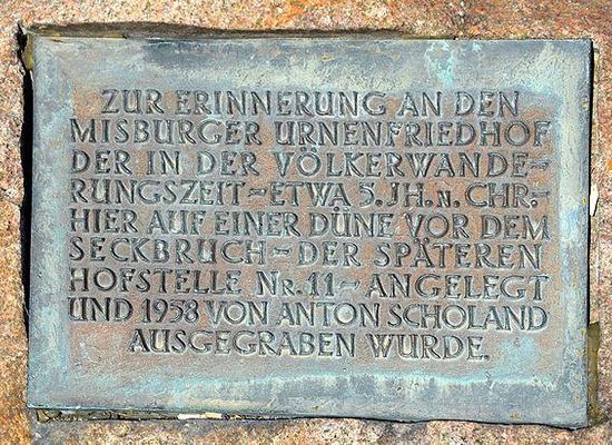 Noch vor dem Beginn der Völkerwanderung in der Spätantike war an Stelle des heutigen Misburgs etwa um das Jahr 250 die Siedlung „Mudisa“ entstanden. 1958 legte der Heimatforscher und Archäologe Anton Scholand auf einer Düne vor dem Seckbruch, wo sich die heute wiederum ehemalige Hofstelle 11 des Bauern Tegtmeier befand, gemeinsam mit Rudolf Niemeyer und F. W. Lüttje ein etwa im 4. und 5. Jahrhundert genutztes Gräberfeld frei. Als Artefakte wurden dabei 38 Urnen aus Keramik gefunden.