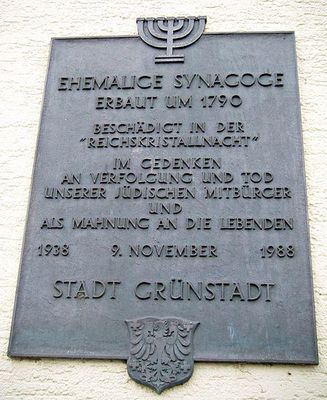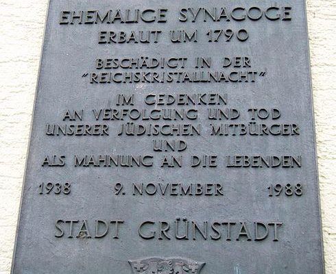 Die ehemalige Synagoge in Grünstadt, im rheinland-pfälzischen Landkreis Bad Dürkheim, ist ein barockes Sakralgebäude, wurde nach 1938 profaniert und dient heute als Geschäftshaus.