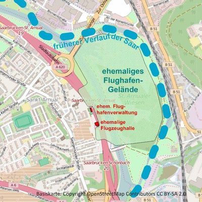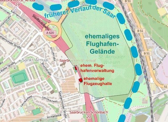 Mit den "Saarbrücker Flugtagen" am 14. und 15, Oktober 1911 wurden die St. Arnualer Saarwiesen zum ersten Mal als Start- und Landeplatz für Flugzeuge genutzt. Am 14. Oktober landete dort auch der Zeppelin "Schwaben", der am selben Tag zu seinem Startpunkt nach Baden-Baden zurückflog. 1914 ließ die Stadt Saarbrücken mit Unterstützung des Militärs auf den Saarwiesen zwischen der Ortslage von St. Arnual und der Saar, die damals noch weit nach Osten ausbog, einen Flughafen anlegen. Er diente während des Ersten Weltkriegs als Militärflugplatz.