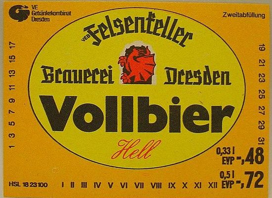Der Dresdner Felsenkeller war um 1900 eine der größten Brauereien Deutschlands. Bier wird hier heute nicht mehr gebraut. Das traditionsreiche Dresdner Felsenkeller Pilsner wird aber heute im neuen Feldschlößchen-Brauhaus im nicht weit entfernten Dresden-Coschütz produziert.