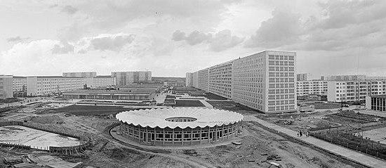 Das Gebäude erstreckt sich, beginnend nahe der zentralen Durchgangsstraße An der Magistrale, in Nord-Süd-Richtung zwischen den Stadtteilen Westliche Neustadt und Südliche Neustadt. Dem mittleren und südlichen Teil des Block gegenüber befindet sich das zu DDR-Zeiten als zentrale Versorgungseinrichtung des Wohnkomplexes gebaute „Gastronom“ .
