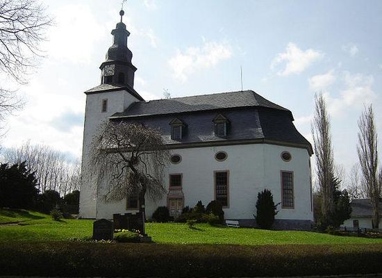 Die Grundsteinlegung zum Bau der heute noch stehenden Kirche fand am 12. April 1728 statt. Über die Vorgängerkirche ist nichts bekannt. Die Bauzeichnung war vom Landrevisor Joh. Michael König aus Rudolstadt erstellt worden. Bereits am 5. September 1728 konnte im Kirchenschiff der erste Gottesdienst gehalten werden. Im Jahr 1731 wurde der Bau vollendet und am 30. Juli erfolgte die feierliche Kirchweih. Ein derartiges Ereignis zog nicht nur die Ortsansässigen in seinen Bann, sondern auch ebenfalls viele Anwohner umliegender Gemeinden. Die Tradition der Kirchweih wird seit vielen Jahren vom Meierschein Kirmesverein e.V. in Form der jährlich stattfindenden Kirmes weiter gepflegt.