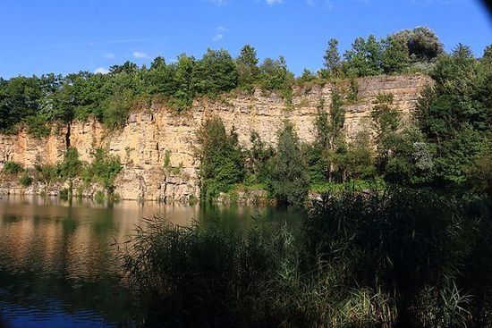 Die Felswand Tauchstein liegt am südlichen Ortsende von Talheim, wo sie einen Abschnitt der steilen, unteren östlichen Böschung des Schozachtals bildet. Im Norden dieses Abschnittes befindet sich ein kleiner, stillgelegter Kalksteinbruch. Böschungsabschnitt und Steinbruch sind heute als Naturdenkmal und, unter dem Namen Felswand Tauchstein und aufgelassener Steinbruch S von Talheim, als Geotop gesetzlich geschützt. In dem Steinbruch sind die oberen „Ceratitenschichten“ des Oberen Muschelkalks bis knapp unterhalb des Kontaktes zum Unteren Keuper , der an den obersten Hängen des Schozachtales ansteht, aufgeschlossen. Nach dem Ende des Steinbruchbetriebes hat sich dort allmählich eine größere Wasserfläche, der Tauchsteinsee, gebildet.