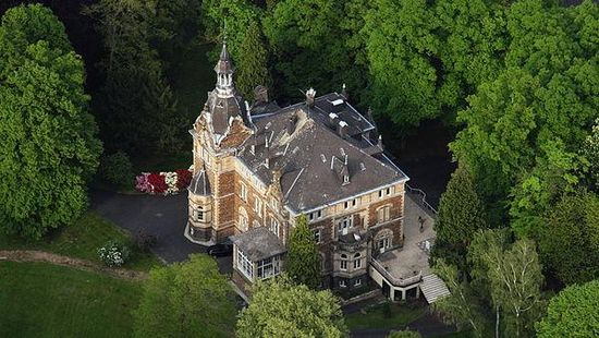 Guido de Weerth von Vettelhoven und Anna Charlotte von Bemberg-Flamersheim heirateten 1887. Der 1884 nobiltierte Elberfelder Industrieerbe, Gutsbesitzer und Politiker Julius von Bemberg-Flamersheim, von Kaiser Wilhelm II. in das Preußische Herrenhaus berufen, stattete seine Tochter anlässlich ihrer Hochzeit mit einer großzügigen Mitgift aus: Anna Charlotte erhielt das von einer weitläufigen Parkanlage mit Teich und Bach umgebene Schloss zum Geschenk.