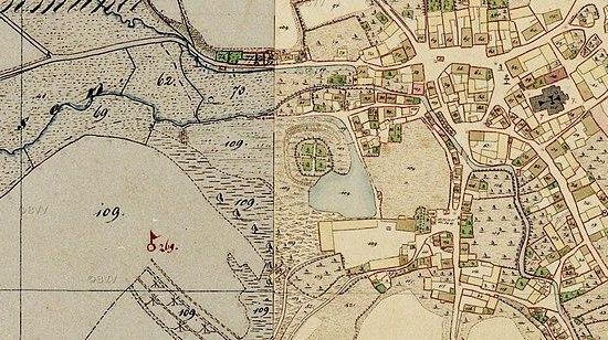 Die Burgstelle befindet sich in rund 440 m ü. NHN Höhe unmittelbar südlich des Hauses Dammstraße 11 im Tal des Rumpelbaches, das sich heute als Gartengelände mit Teichen darstellt. Sie liegt damit nur wenige Meter nordnordwestlich des heute ebenfalls abgegangenen Schlosses Windischeschenbach.