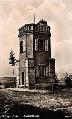 Aus dem Thüringerwald-Verein ging 1911 der Zweigverein „Zur Barigauer Höhe“ hervor, welcher offiziell am 29. März 1911 gegründet wurde. Dieser Verein machte es sich zum Ziel auf der Barigauer Höhe eine massive Schutzhütte zu errichten. Das notwendige Genehmigungsverfahren wurde vom damaligen Barigauer Gemeindevorsteher Lange im April 1912 eingereicht. Am 19. Juni 1912 wurde eine Bauzeichnung, welche von dem Maurermeister Hilmar Abicht aus Unterweißbach im Auftrag des Thüringerwald-Zweigvereins „Zur Barigauer Höhe“ erstellt wurde im zuständigen Amt in Königsee abgegeben. Diese Zeichnung wird im Thüringer Staatsarchiv in Rudolstadt aufbewahrt. Sie war die Grundlage für den 9 m hohen Aussichtsturm mit den Grundmaßen 4,52 × 4,52 m.
