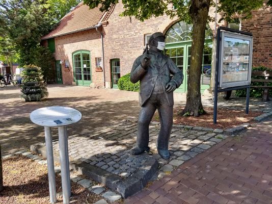 Man erkennt deutlich die Parallelen zum heutigen "Heeker Schlöffken": Sneese, Stock über die Schulter, Mettwurst, Strohwische in die Holzschuhe, Taschentuch um den Hals.