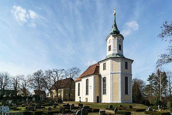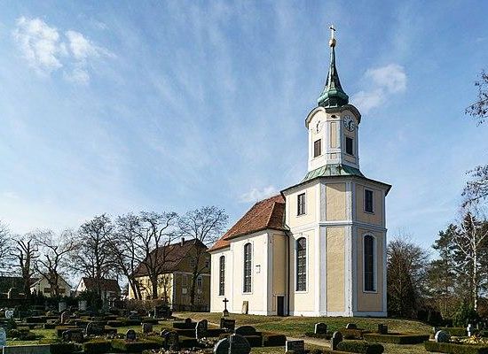 Die barocke Dorfkirche wurde 1731–1732 als einschiffiger Sakralbau errichtet. Der achteckige Kirchturm und die Innenausstattung mit den Emporen stammen vom Ende des 18. Jahrhunderts.