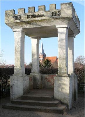 Anlässlich des 100. Jahrestages der Völkerschlacht von Leipzig entstanden in zahlreichen Orten Deutschlands Denkmäler, die an das Ereignis erinnern. Während die Völkerschlachtdenkmäler in den Dörfern oft aus schlichten Steinen oder Tafeln bestehen, haben sich einige kleinere Städte für andere Varianten entschieden. Eine solche findet sich in Bad Sülze.