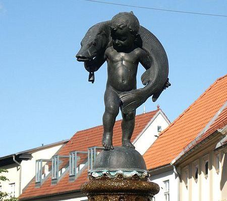 Nach dem Verschwinden der öffentlichen Nutzbrunnen im 19. und 20. Jahrhundert kam der Wunsch auf, Plätze durch Denkmäler oder Zierbrunnen zu verzieren, so auch in Teterow 1912 im Zuge der Erneuerung des Marktes. Als konkreter Bezug auf die Stadt bot sich in Teterow die Umsetzung einer Schildbürgergeschichte an. So kam man im Magistrat überein, die Hechtsage zum Thema zu machen.