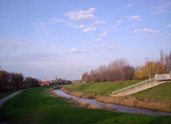 Das ehemalige Dorf liegt südlich von Leipzig und erstreckt sich in Nord-Süd-Richtung etwa auf 2 Kilometern direkt entlang des Westufers der Pleiße in der Leipziger Tieflandsbucht. Direkt durch den Ort verläuft die Staatsstraße 72, die südlich Anschluss an die B 2 und die B 95 hat. Westlich des Ortes befindet sich die sogenannte Neue Harth, ein rekultivierter Bereich auf ehemaligem Bergbau-Abraumgelände, der sich bis Zwenkau, Markkleeberg und Böhlen zieht. Östlich des Ortes, an der dort verlaufenden Bundesstraße 2, liegt das Rückhaltebecken Stöhna, das ein Teil des Hochwasserschutzsystems der Pleiße bildet. In vier Kilometern Entfernung befindet sich das Kraftwerk Lippendorf, das als eines der modernsten Braunkohlekraftwerke Europas gilt.