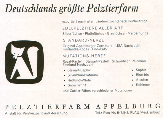 Die Pelztierfarm Appelburg in Plau am See umfasste 52 ha und war Europas größte Zuchtanlage für Nerze. Außerdem wurden Marder, Füchse, Dingos und Schafe gezüchtet.