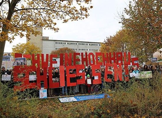 Im deutschsprachigen Raum meint man damit meist eine solche bei Maasdorf in Sachsen-Anhalt. Das 1970 errichtete Gebäude galt wegen seiner architektonischen Sonderform als Prestigeobjekt der DDR und wird heute von der HET GmbH unter der Leitung des Niederländers Michiel Taken betrieben. Auf insgesamt sechs Etagen, also als vertikale Landwirtschaft, werden rund 500 Hybridsauen zur Zucht gehalten. Seit 2015 gibt es regelmäßig starke Kritik und Proteste gegen die Anlage wegen Vergehen gegen den Tierschutz. Im September 2018 wurde das Gebäude leergeräumt, weil es umgebaut werden und danach wieder in Betrieb gehen soll. Stand September 2020 war laut Landkreis keine Weiternutzung des Gebäudes geplant.