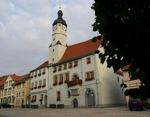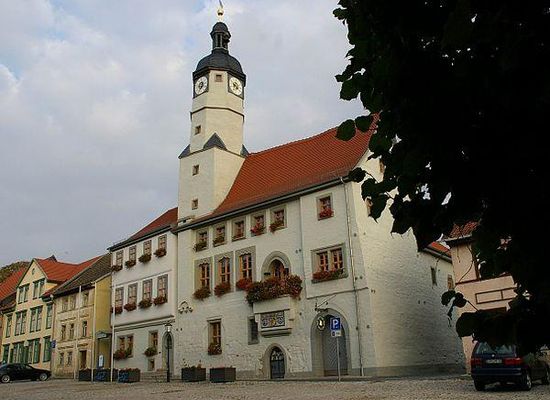 Der mehrteilige Gebäudekomplex wird an der Marktseite von einem traufständigen Gebäude mit drei Geschossen mit seitlich aufgesetztem Turm beherrscht. Der Kern dieses Gebäudes, ein ursprünglich freistehender Quaderbau, war um 1200 als Sitz des landgräflichen Marktmeisters entstanden. Seine nach Norden weisende Fassade sowie die Anbauten im Westen und Süden sind aus verschiedenen Bauphasen von der Spätromanik bis zur Spätrenaissance. Das Äußere des romanischen Baus wurde stark verändert. Erhalten geblieben ist das Erdgeschoss. Nach einem Brand 1474 wurde ein neuer Dachstuhl aufgesetzt. 1547 wurde die Marktfassade verändert. Ein spitzbogiges Portal wurde im Erdgeschoss eingefügt. An der Ostseite wurde ein um 1570 errichtetes, ursprünglich zweigeschossiges Bürgerhaus mit dem Rathaus verbunden und später aufgestockt. 1589/90 wurde der Turm errichtet. Das Erdgeschoss ist mit einem Kreuzgratgewölbe auf kräftigen Konsolen überspannt.