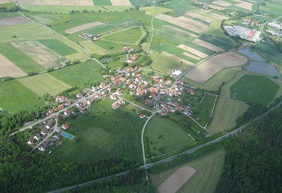 Das Kirchdorf liegt am Rotbach, der ein rechter Zufluss der Ampfrach ist, die wiederum ein rechter Zufluss der Wörnitz ist. Im Süden grenzt das Haundorfer Holz an, 1 km östlich erhebt sich der Mühlberg . Die Kreisstraße AN 38 führt nach Unterampfrach zur Staatsstraße 2222 . Außerdem führt diese 1,1 km westlich zur Staatsstraße 1066 bzw. 1,1 km östlich an der Holdermühle vorbei zur St 1066. Eine Gemeindeverbindungsstraße führt nach Gumpenweiler .